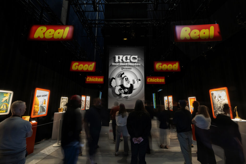Chicky Ricky, voiced by actor and comedian Munya Chawawa, and a glut of other characters – including shelved mascot Penny Peckish, voiced by comedian and impressionist Morgana Robinson and The Boss voiced by comedian Reggie Watts – takes audiences through a mesmerising blend of motion graphics, illustration, gaming and cinema that moves between the tantalising and the grotesque, the nightmarish and the hilarious.